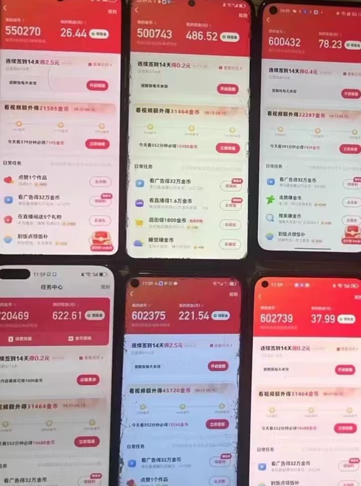 看一次广告100金币,无风控无限撸,1分钟100,1小时6000,核算一小时6毛