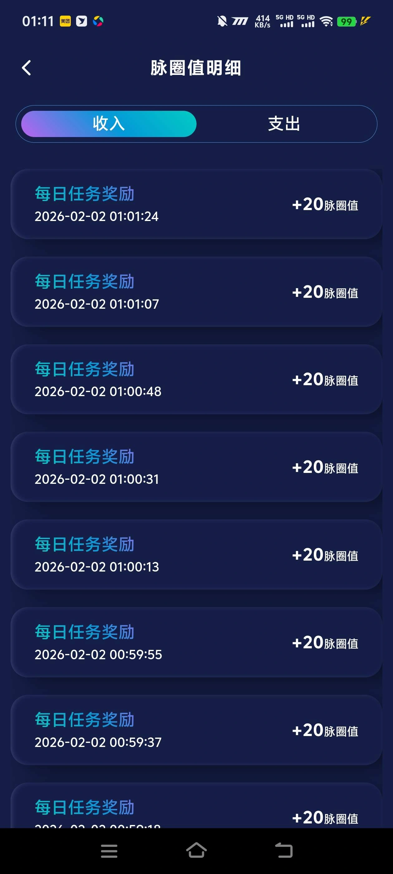 • 20个广告=400-800脉圈值