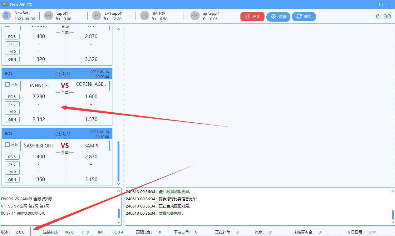 脚本会根据赔率买入金额,不管哪队赢,我们的获利金额都是大于下注金额,也就是说稳赚不亏。